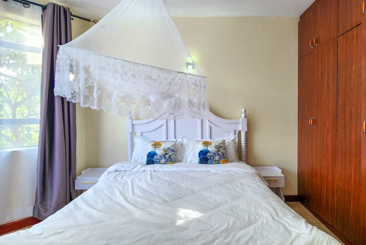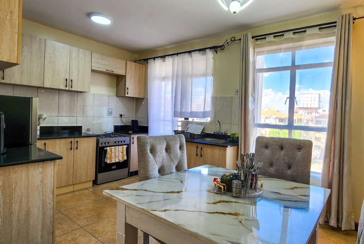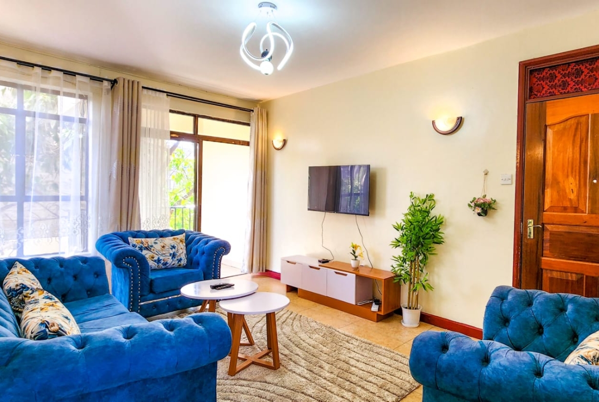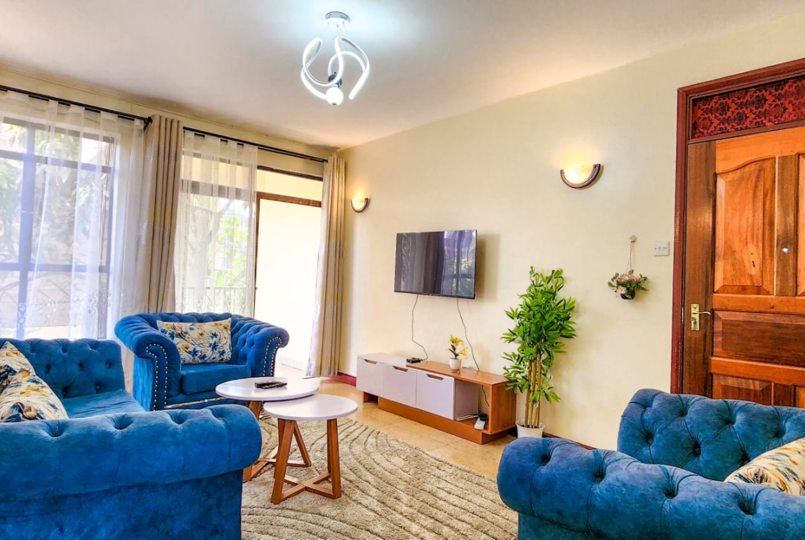 This beautiful 2 bedroom furnished apartment located in Serene area of Syokimau only 700M from Msa Rd,near GateWay Mall,easy access to GateWay Mall & Signiture Mall.
