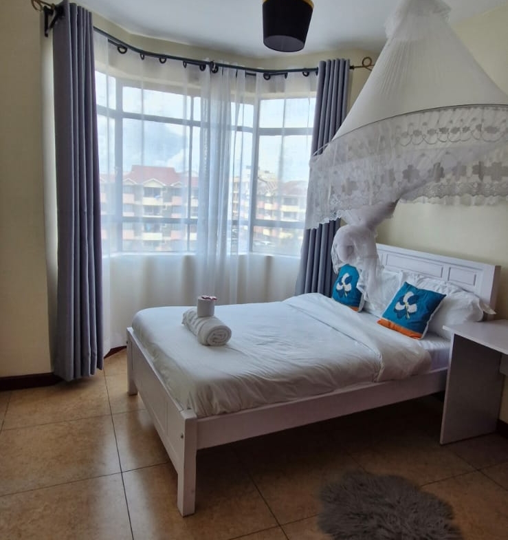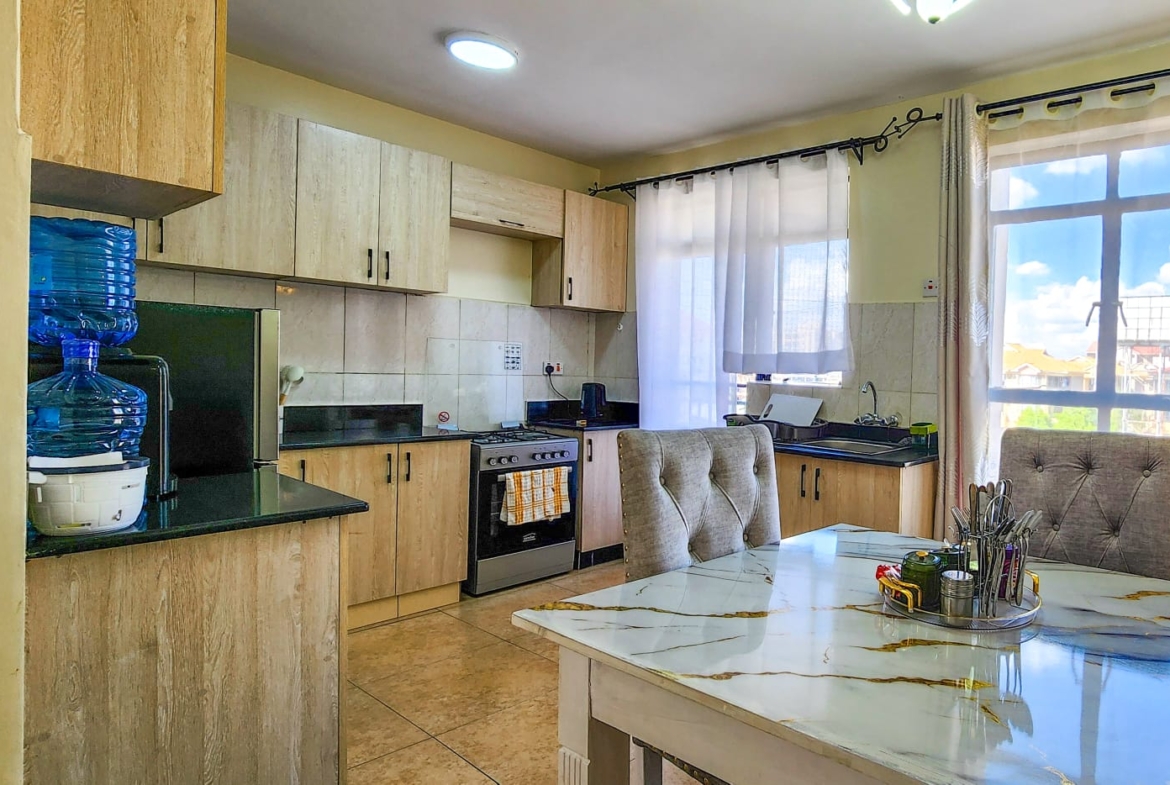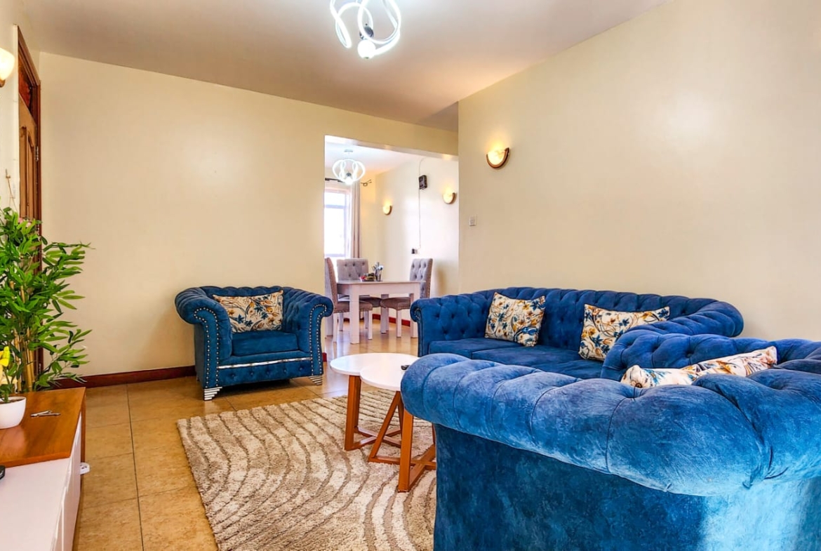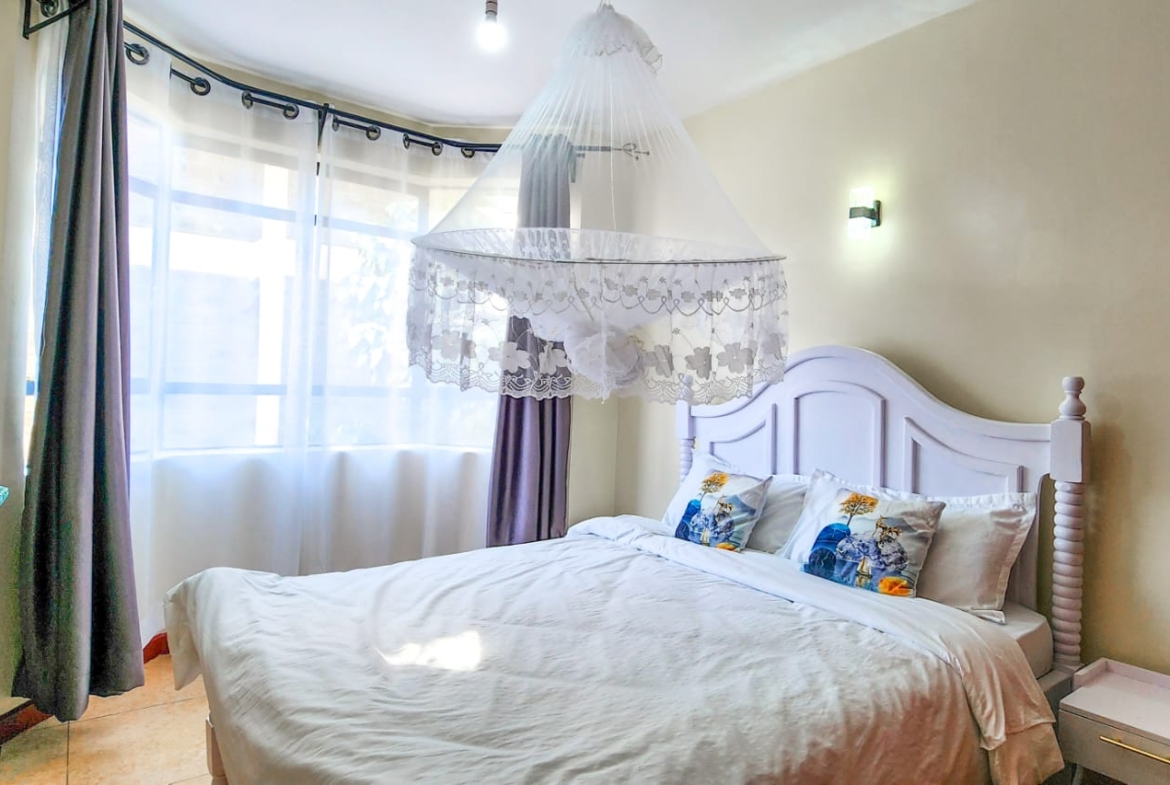 This beautiful 2 bedroom furnished apartment located in Serene area of Syokimau only 700M from Msa Rd,near GateWay Mall,easy access to GateWay Mall & Signiture Mall.